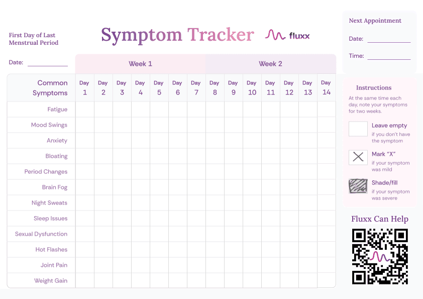 Track fatigue, mood changes, sleep issues, hot flashes, brain
